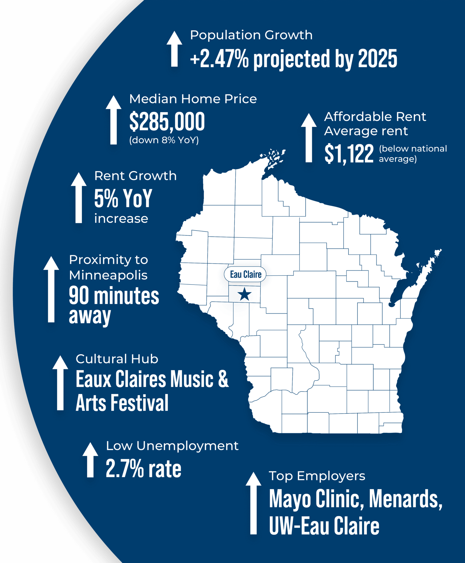 Eau Claire is a thriving market with stable population growth and strong demand for housing.
